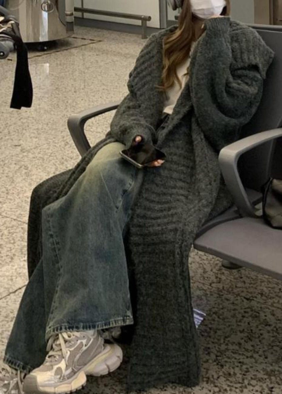 Chic Grey Peter Pan Collar Long Knit Loose Cardigans Fall RS052
