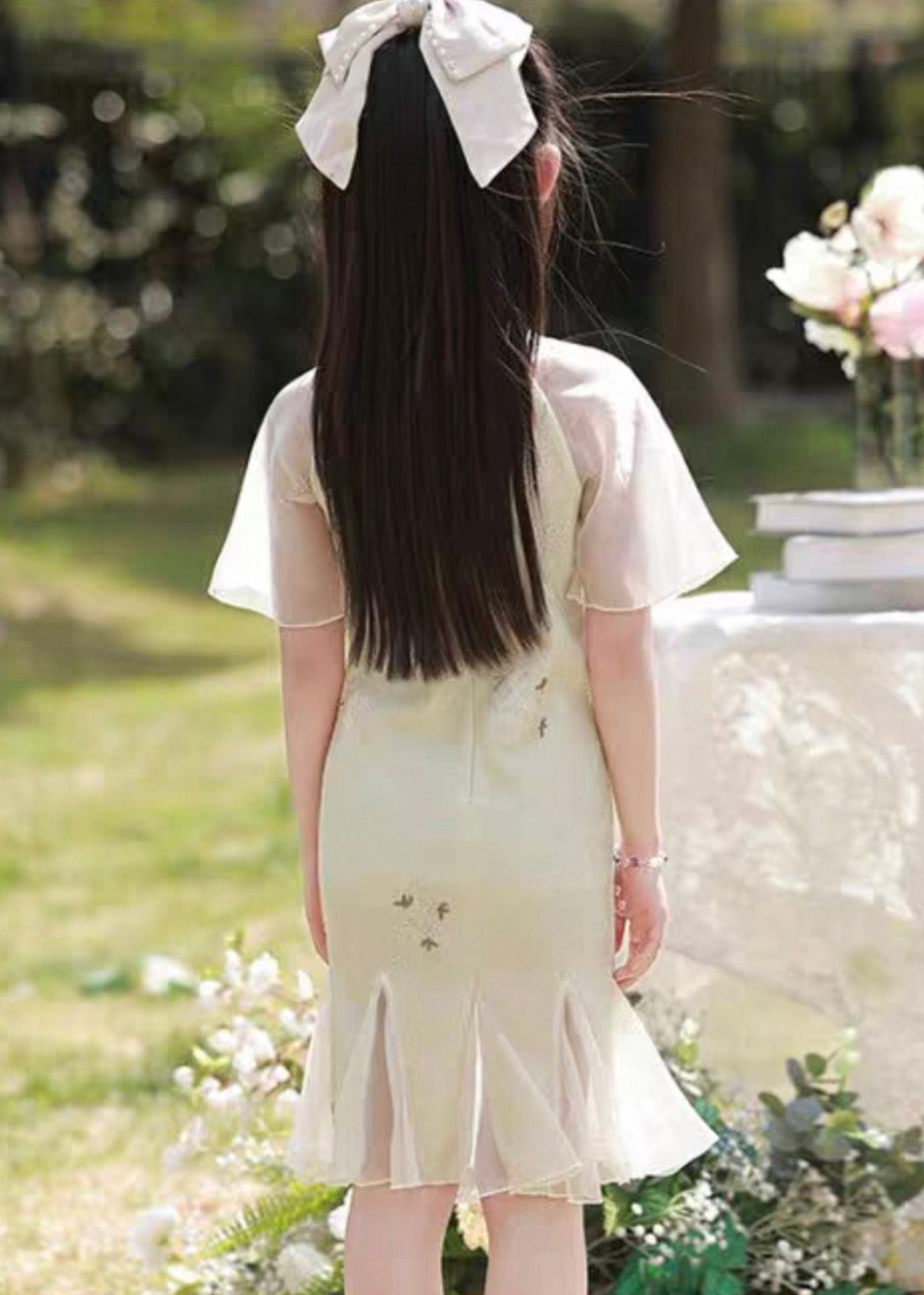 Retro Light Green Print Ruffled Patchwork Kids Long Dress Summer