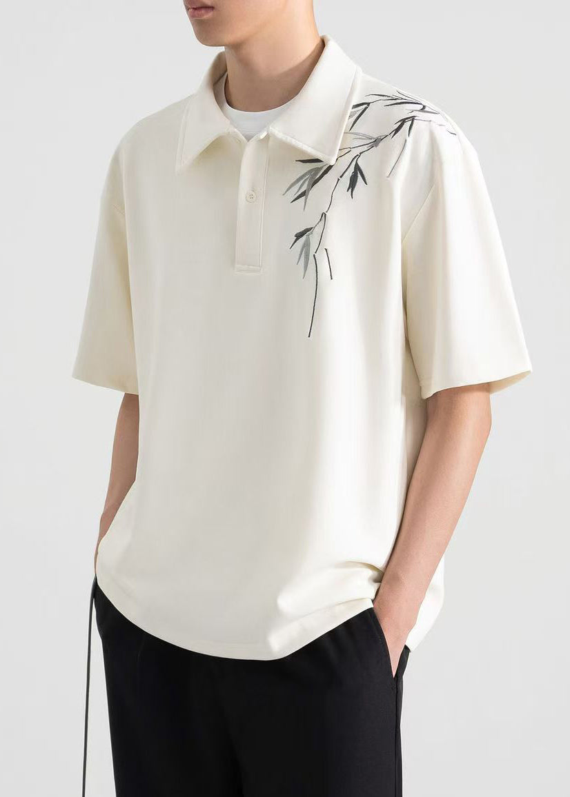 Loose Apricot Button Print Cotton Mens Polo Shirt Summer
