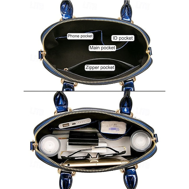 Tote Leather Bag Patent - Green Elegant Women's Shiny