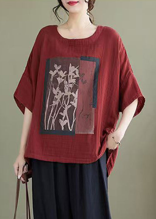 Plus Size White Print Low High Design Cotton Blouses Bracelet Sleeve