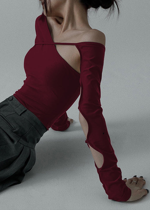 Indulge in the elegance of our Women Black Asymmetrical Hollow Out Cotton Dance T Shirt for Spring, crafted with the finest cotton and designed with an avant-garde asymmetrical cut. Elevate your style with this exclusive piece.