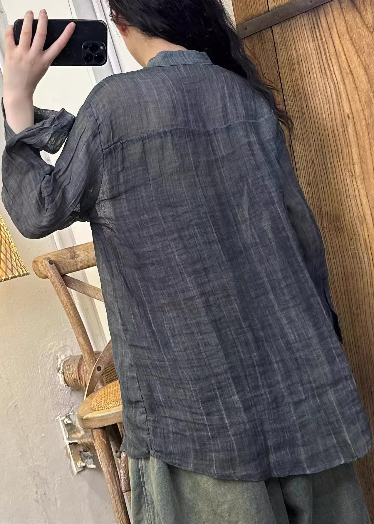Wrinkled Solid Pink Button Spring Linen Women Shirt