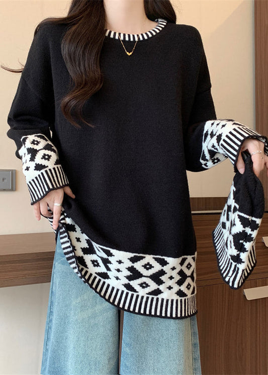 Boutique Red O Neck Jacquard Patchwork Knit Sweater Winter RG039