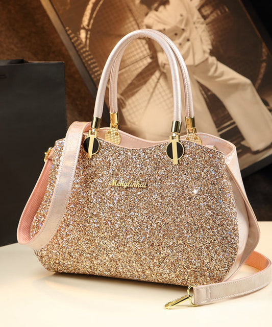 Women Apricot Zircon Large Capacity Faux Leather Tote Handbag YX006