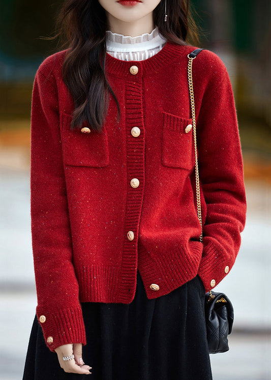 New Red Button Pockets Patchwork Knit Coat Spring TF024
