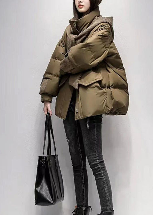 Boutique Coffee Hooded Pockets Duck Down Short Coat Winter TD041