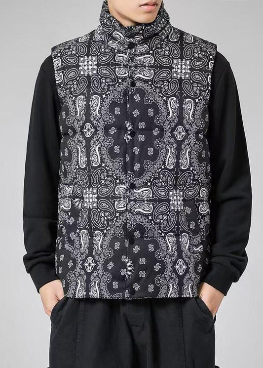 Loose Colorblock Stand Collar Pockets Cotton Filled Men Waistcoat Winter RN001