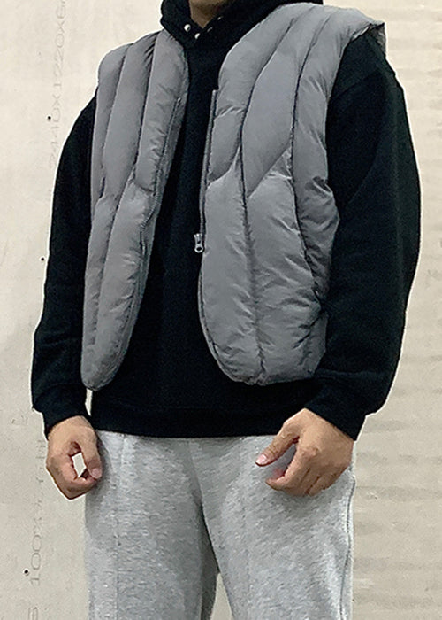 Simple Grey Zip Up Pockets Cotton Filled Mens Waistcoat Sleeveless RN002