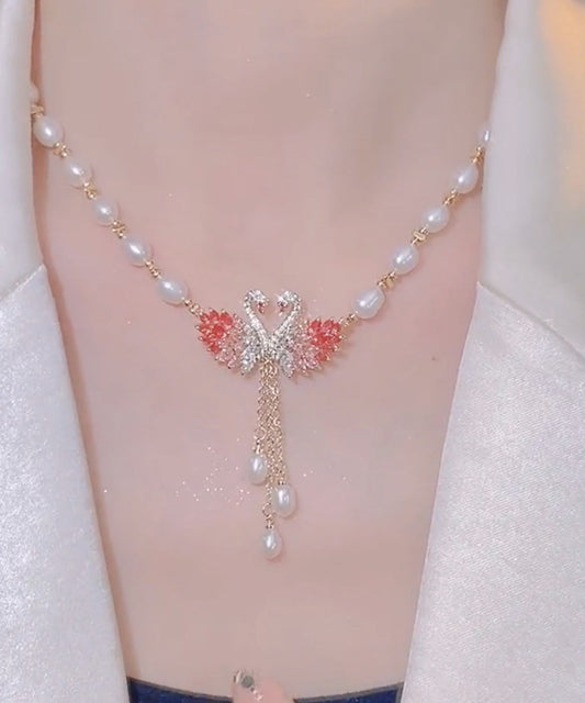 Fashion Light Purple Copper Overgild Swan Pearl Pendant Necklace YD044
