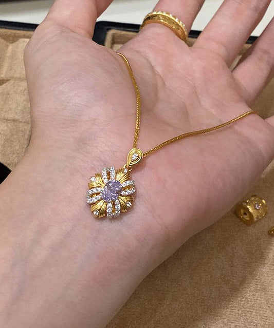 Style Gold Copper Overgild Zircon Sunflowe Pendant Necklace YD042