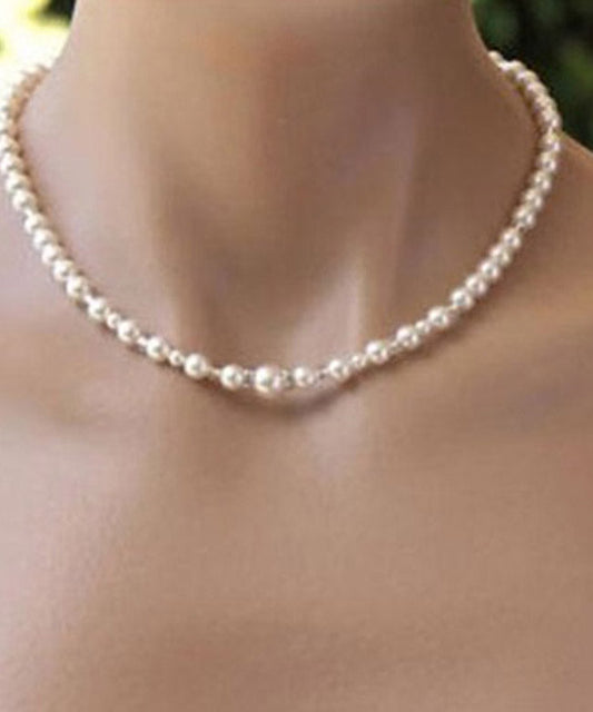 Cute White Alloy Pearl Beadi Gratuated Bead Necklace YA011