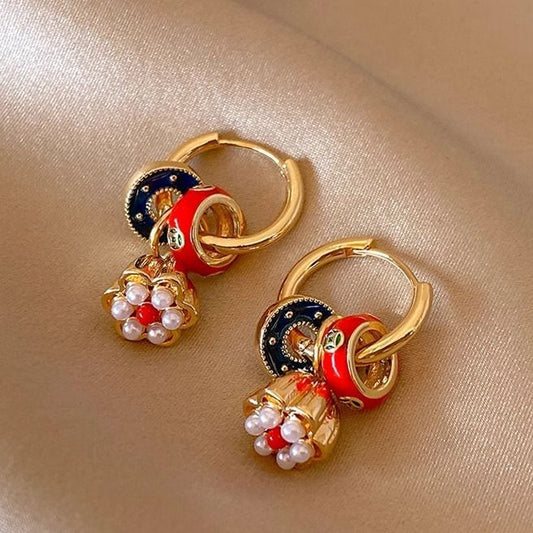 Dangle Pearl Alloy Earring Faux Floral