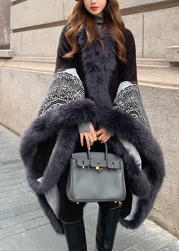This elegant Boutique Handmade Black Hooded Patchwork Faux Fur Shawl, crafted with expert care, exudes exclusivity and sophistication. Its luxurious faux fur and intricate patchwork design evoke feelings of refined luxury and artistry, making it the ultimate fashion statement.