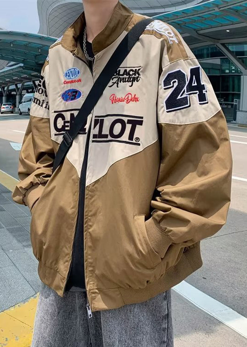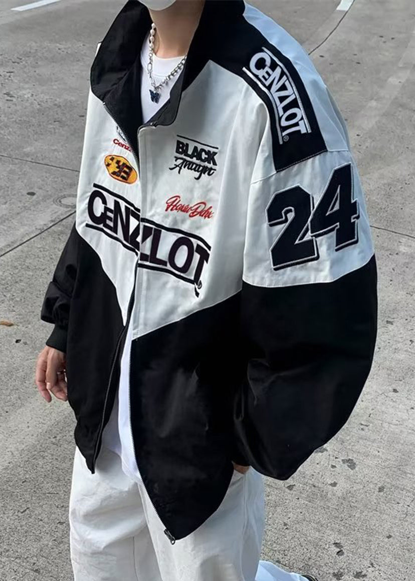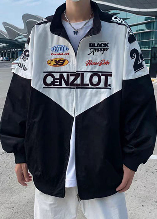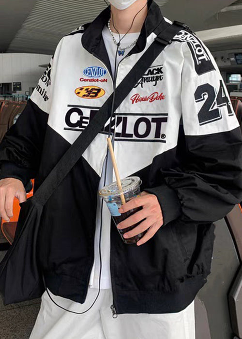 Patchwork Cotton Spring TC001 Zippered Black Coat Casual Men Letter