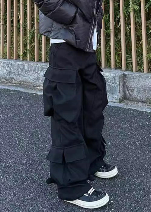 Casual Black Button Pockets Cotton Mens Pants High Waist Spring