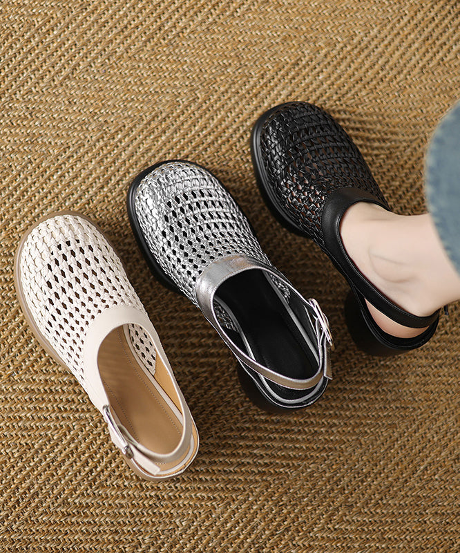 Indulge in the sophisticated elegance of our Chic Black Chunky Heel Faux Leather Sandals, featuring a luxurious hollow out design.