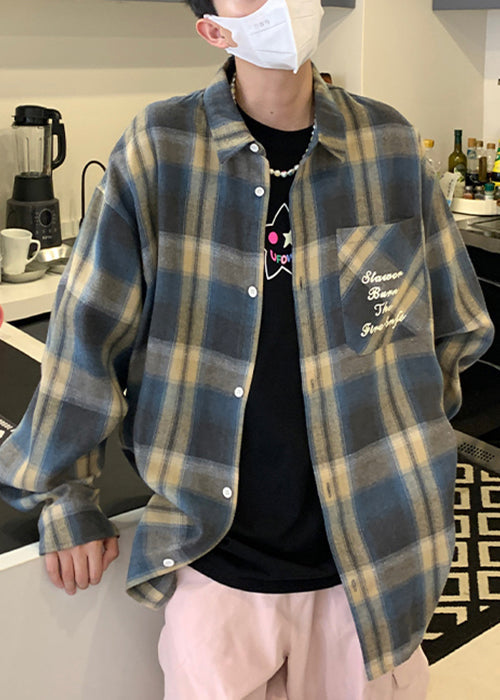 Collar Shirt Loose Orange Peter Plaid Pan Spring Cotton Men