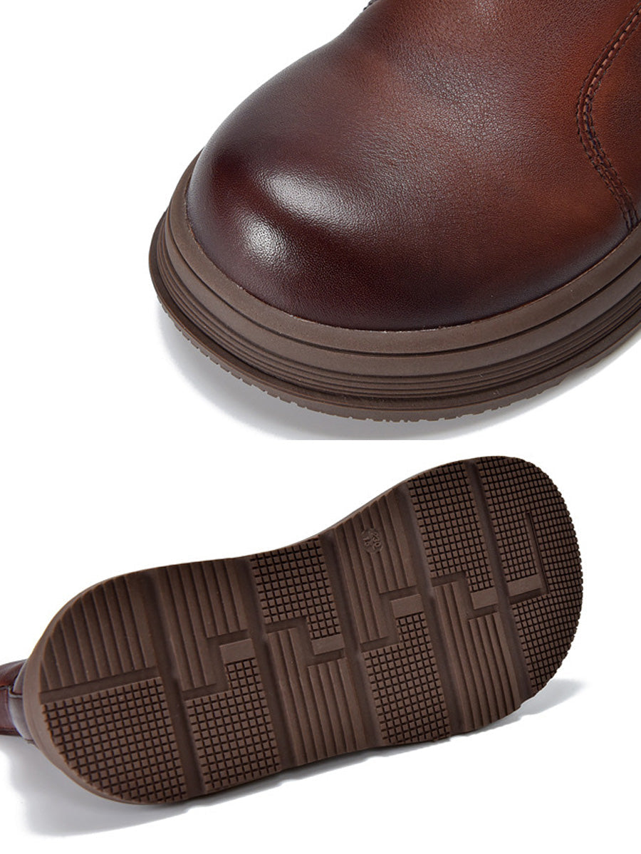 Color Chelsea Boots Leather Women Platform Pure Winter