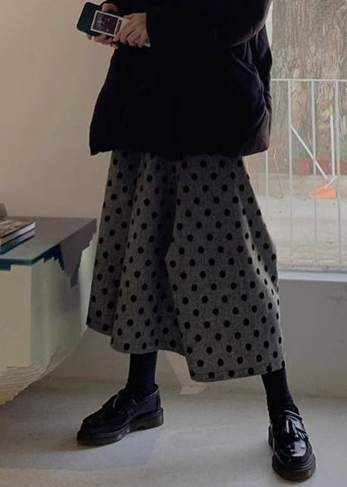 New Grey Dot Elastic Waist Cotton Wide Leg Pants Summer