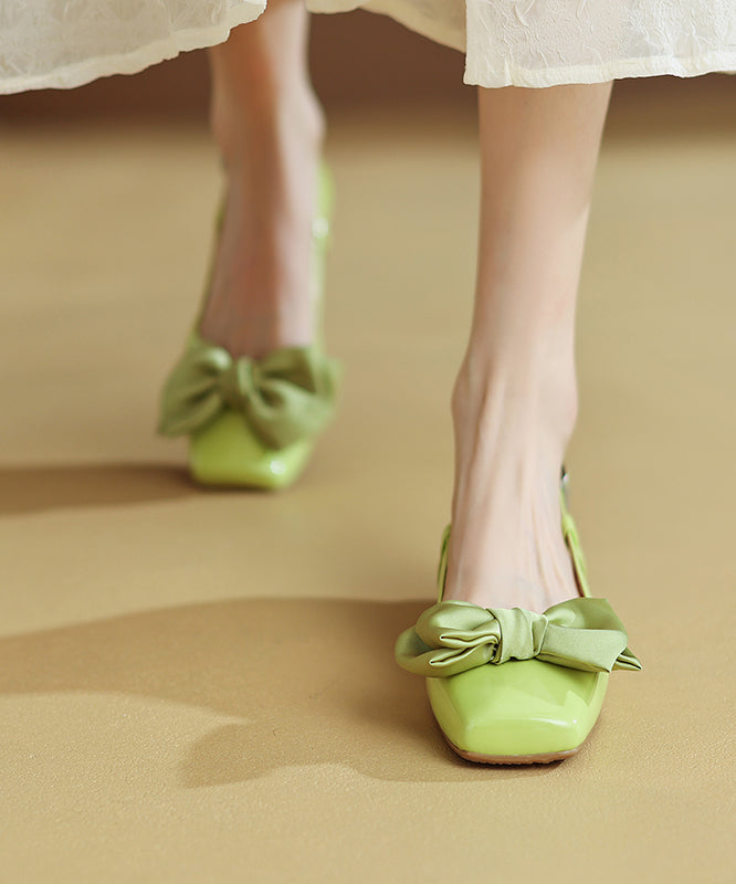 Refined Spliced Bow Thick Heeled Sandals in Pink Genuine Cowhide Leather