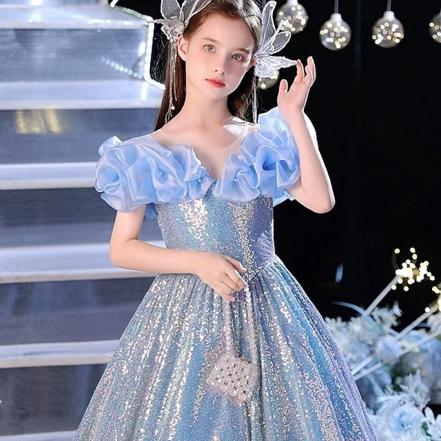 Gender: Girls', Age Group: Kids, Style: Sweet, Princess, Occasion: Performance, Wedding, Kids Apparel: Party Dress, Fabric: Mesh, Pattern: Solid Color, Sleeve Length: Sleeveless, Design: Mesh, Age: 2-12 Years, Season: Summer, Fall, Spring, Look After Me: Hand wash, Elasticity: Inelastic, Fit Type: Tailored Fit, Dresses Type: Sheath Dress, Tulle Dress, Flower Girl's Dress, Dress Length (cm): Mid-Calf, Neckline: Crew Neck,