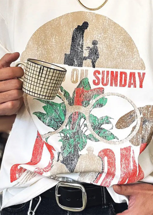 Neck Print T Cotton White Shirts Summer Modern Letter O