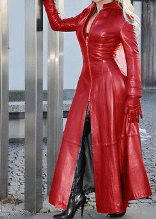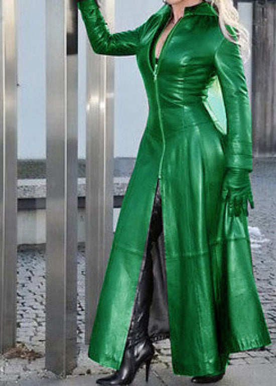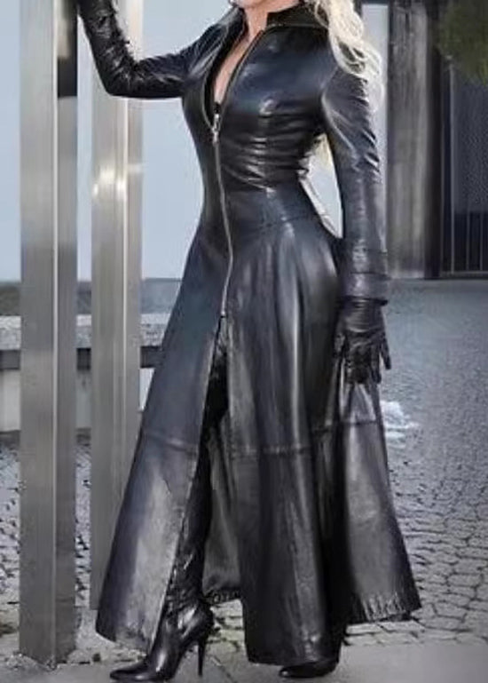 New Black Peter Pan Collar Zip Up Patchwork Faux Leather Coat Spring TH045