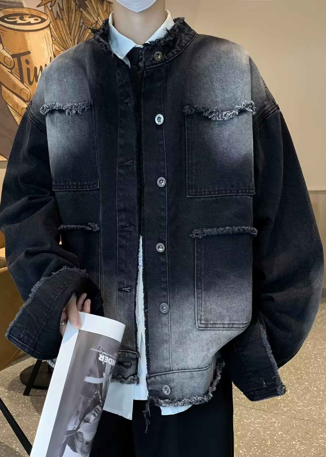 Elevate your style with the New Black Stand Collar Button Pockets Denim Mens Coat for Spring. A sleek and refined addition to your wardrobe, this coat combines the classic design of a denim jacket with the sophistication of a stand collar and premium button pockets. Perfect for the discerning gentleman, embrace luxury and exclusivity with this must-have piece.