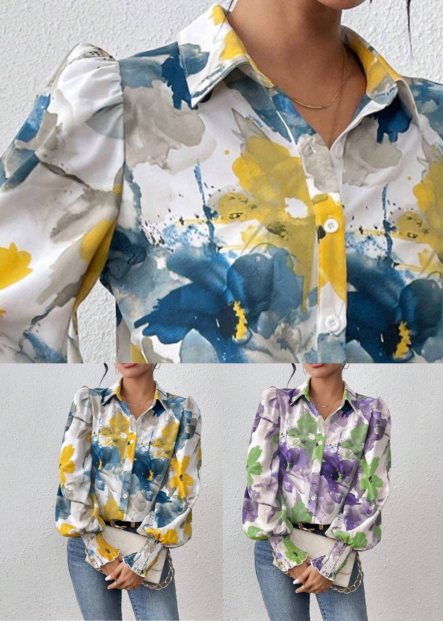 Purple Print Cotton Spring Blouse Peter Pan Collar