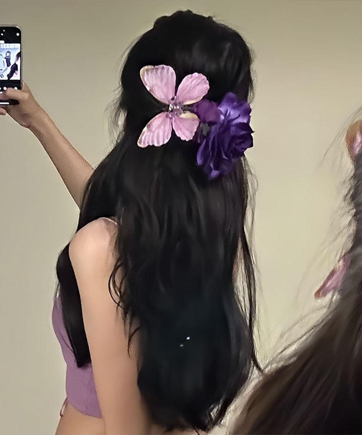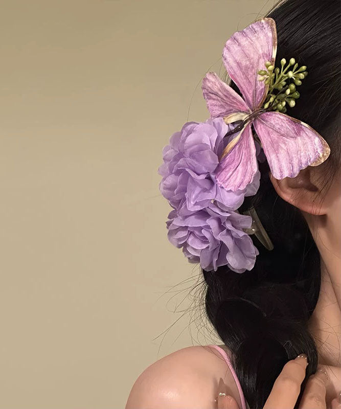 Original Purple Sterling Silver Overgild Butterfly Floral Hairpin