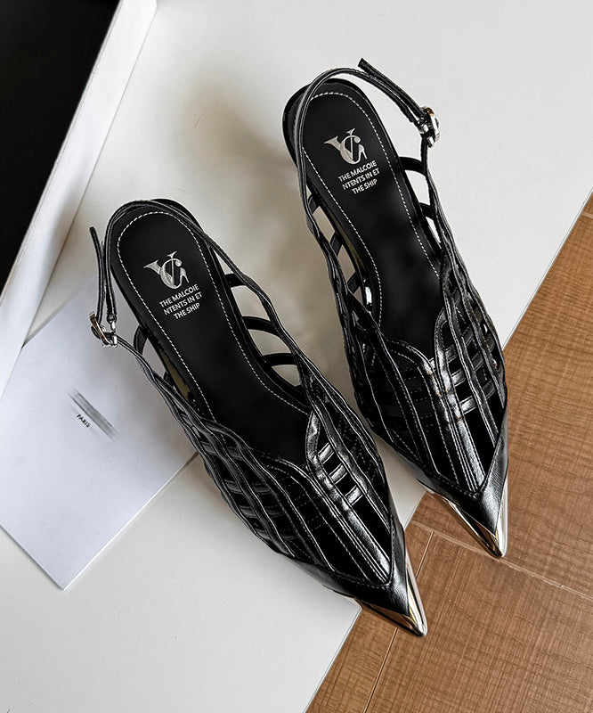 Sandals Black Out Leather Splicing Cowhide Hollow Heel High Chic