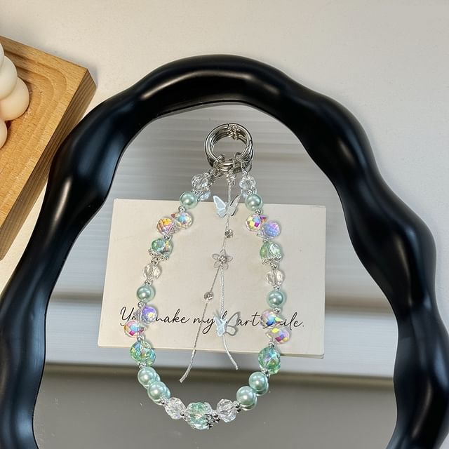 Butterfly Faux Pearl Wrist Phone Strap with Lanyard Pad