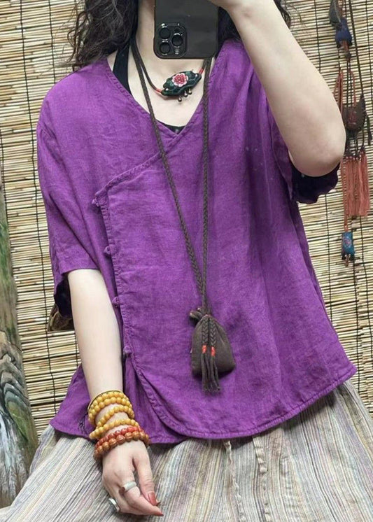 Pantalon court en lin à taille élastique avec poches violettes grande taille pour l'été VV043