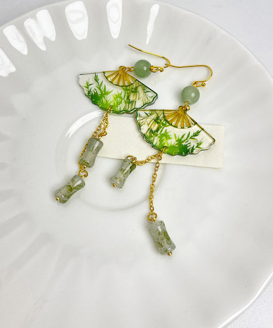 Boucles d'oreilles pendantes en alliage acrylique vert de style chinois en jade et bambou WH039