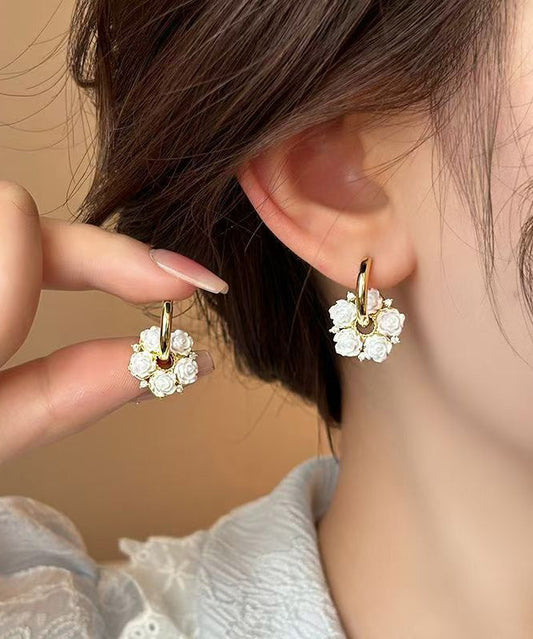 Boucles d'oreilles créoles camélia en alliage de cuivre blanc élégant WH036