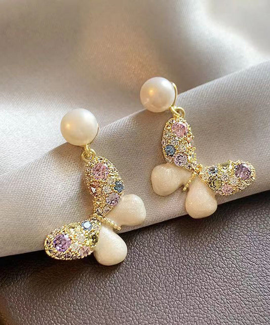 Boucles d'oreilles à tige en forme de papillon avec perles en zircon et alliage arc-en-ciel WH047