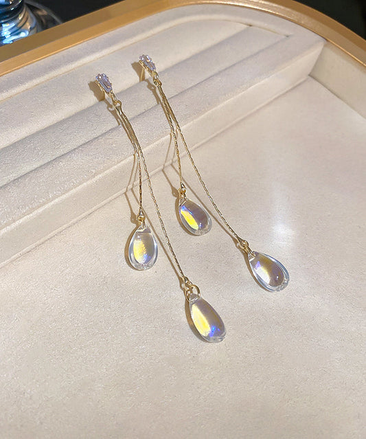 Boucles d'oreilles pendantes fines en or, cuivre, zircon et résine en forme de goutte d'eau WH050