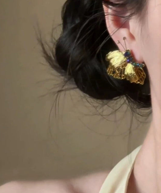 Boucles d'oreilles à tige en argent sterling doré vintage avec papillon creux WF003