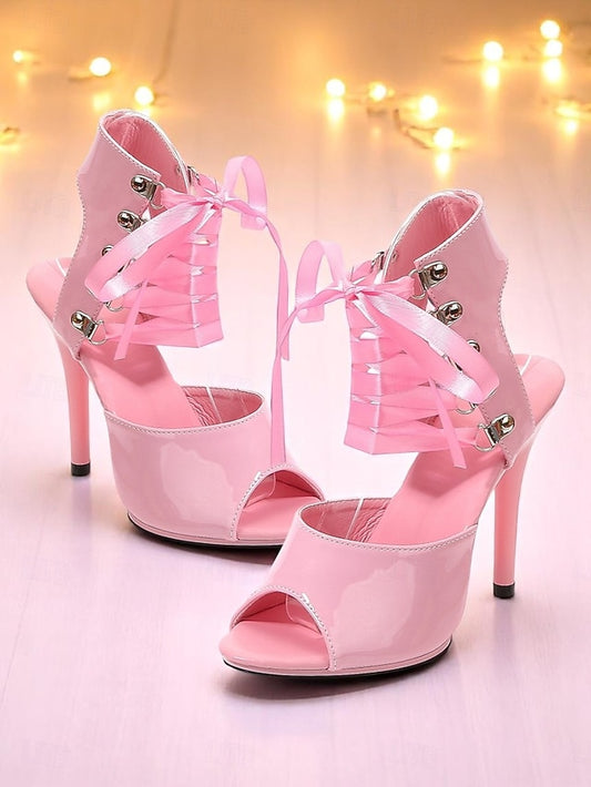 Sexy Sandals Lace-Up Patent Stiletto Black Cutout Women's -