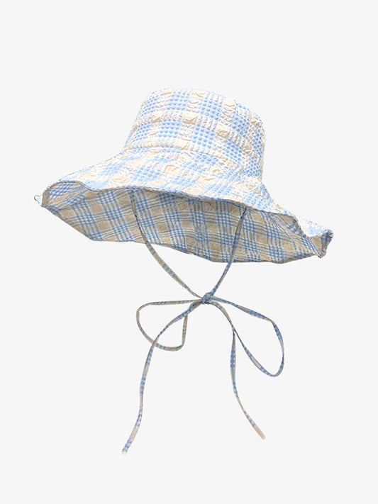 Chapeau d'été à large bord pour femme, style artistique, à carreaux, résistant au soleil, ZZ1042