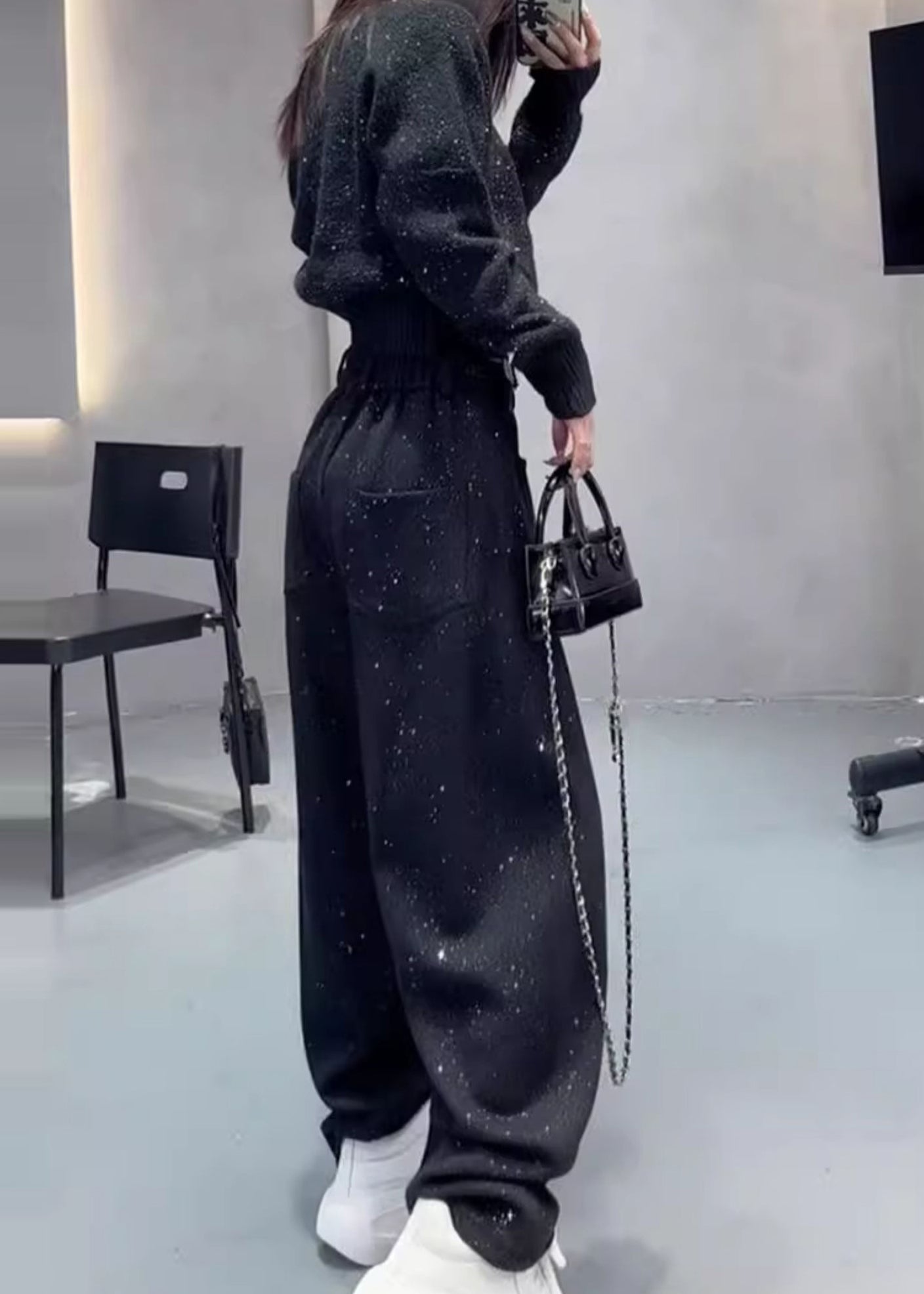 Fashion Grey Sequins Warm Fleece Woolen Pants Spring YO19
