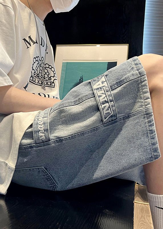 Modern Blue Letter Pockets Patchwork Denim Men Shorts Summer YL032
