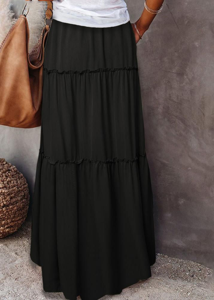 Patchwork Waist Handmade Ruffled Yellow Maxi Summer Skirt Elastic