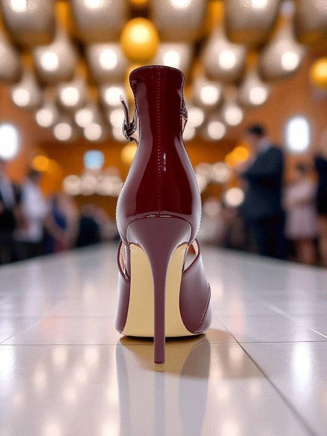 Gender: Women's, Category: Heels, Style: Elegant, Fashion, Sexy, Occasion: Party, Toe Shape: Pointed Toe, Upper Materials: Leather, Patent Leather, Lining Materials: Synthetic Leather, Outsole Materials: Rubber, Season: Winter, Fall, Summer, Spring, Size Suggestion: standard size, select your usual size, Closure Type: Lace-up, Heel Height(inch): 4.72, Heel Type: Stiletto,