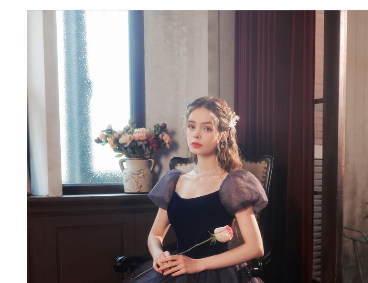 Short-Sleeve Glitter Mesh Evening Gown