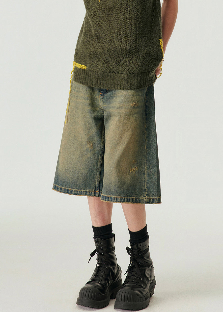 Vintage Blue Pockets High Waist Denim Men Shorts Summer YL013