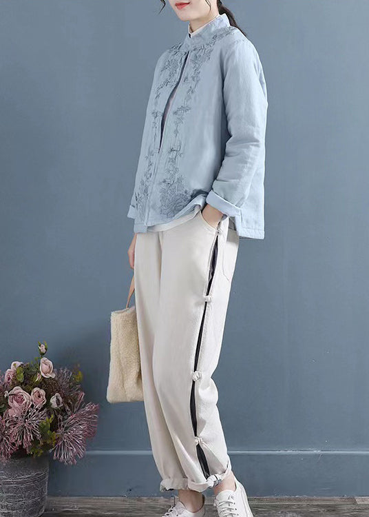 Vintage Purple Embroidered Oriental Button Fine Cotton Filled Coats Spring TI014