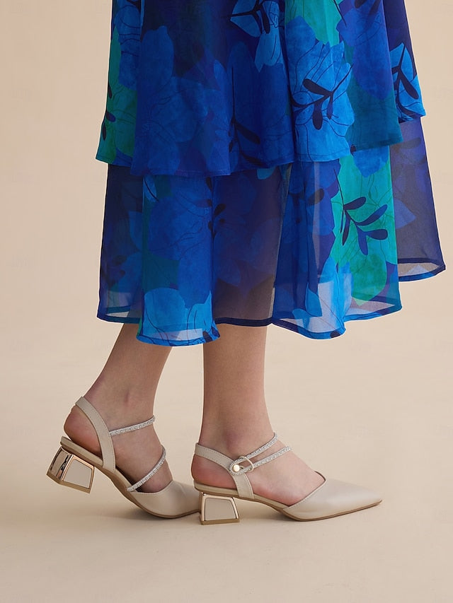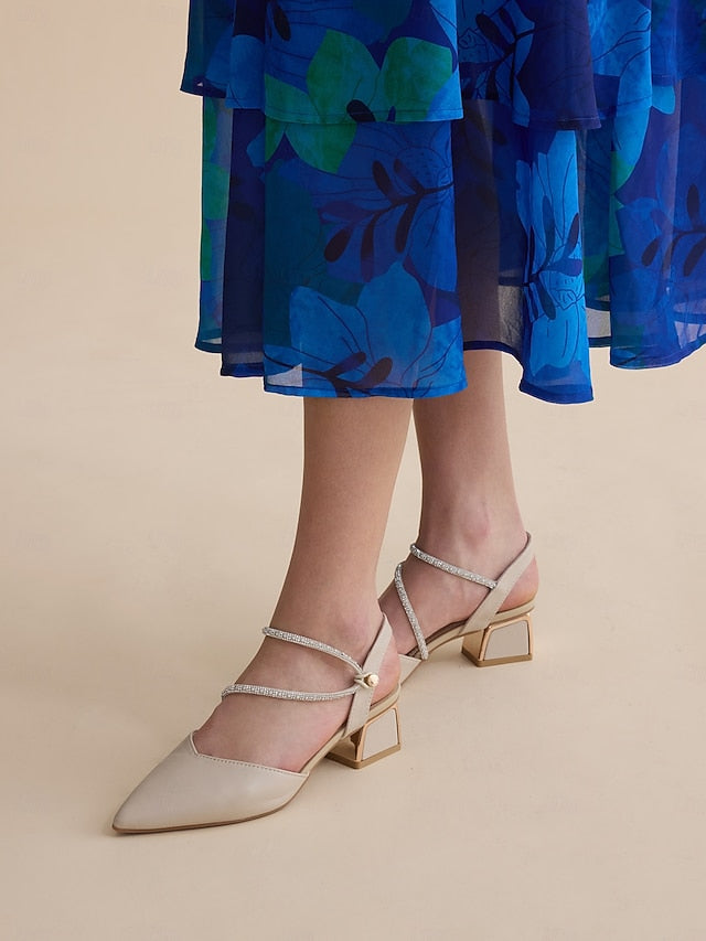 Elegant Women's Slingback Pointed Toe Heels with Rhinestone