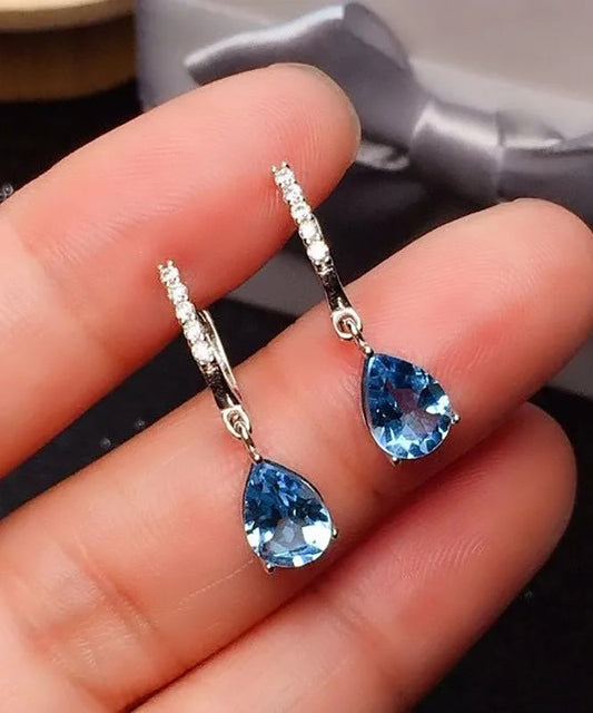 Boucles d'oreilles pendantes en argent sterling rouge avec pierres précieuses et zircones incrustées AC1052